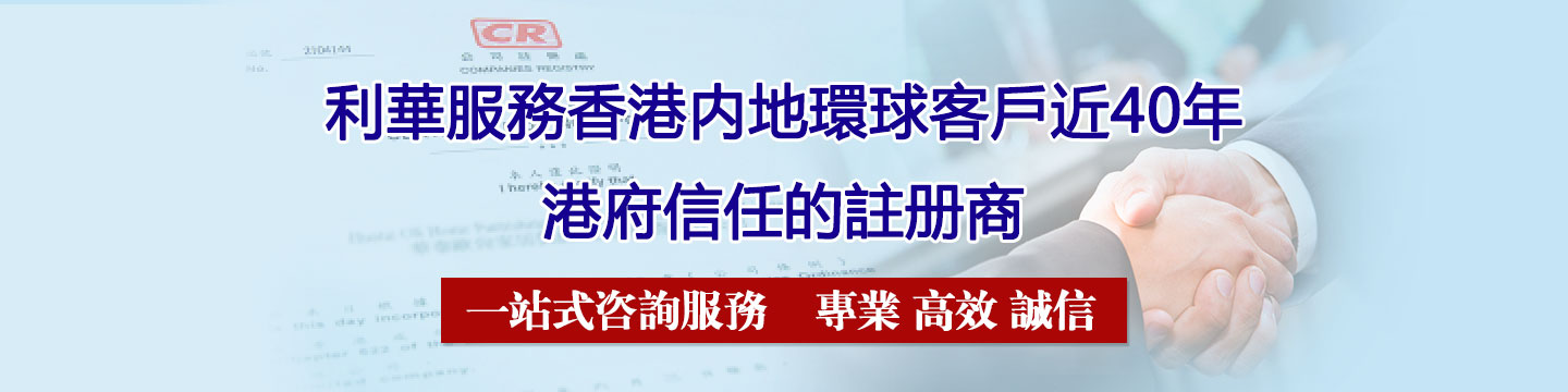 我司在香港已有三十多年商務註冊經驗,專業從事香港及國內外公司註冊,秘書服務,報稅,年檢申報,開立公司/個人銀行帳戶及資信證明,股權轉讓,地址更改,代申領司法部委任的香港律師各類公證,代辦各類香港牌照等等。我們得到香港政府、各大銀行、同行、同仁、及客戶的嘉許和信任,對此表示感謝,今後我們願與客戶攜手,創造商機。